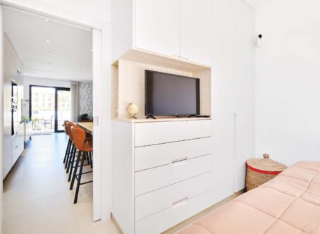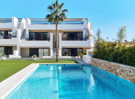 Modern 3-Bed Top Floor Apartment with Roof Terrace, San Pedro del Pinatar A fantastic opportunity to purchase a modern, spacious 3-bedroom, 2-bathroom top floor apartment in a small gated community with communal pool in the popular town of San Pedro del Pinatar. Located on the edge of town within walking distance of all amenities-including a large supermarket-and only 2 km from the beach, this property offers the perfect lock-up-and-leave holiday home or permanent residence. The apartment is accessed via external stairs leading to a terrace with seating area overlooking the communal pool. The front door opens into a bright open-plan living/dining room, with a fully fitted kitchen at the rear featuring a breakfast bar. The first double bedroom, currently used as a study, includes a fold-down bed for guests. A hallway leads to the second bedroom with built-in wardrobes, a modern family bathroom with walk-in shower, and the master bedroom with en-suite bathroom, also with walk-in shower. From the terrace, external stairs lead to a 70 m² private roof terrace, complete with an outside kitchen (with electric shutter), utility room, WC, and plenty of space for sunbathing and entertaining. Additional features include electric sun awnings, ducted hot/cold air conditioning throughout, underfloor heating in the bathrooms, allocated parking, and a storage room. Constructed in July 2023, the apartment is key-ready and finished to a high standard. San Pedro del Pinatar is a vibrant coastal town on the northern coast of Murcia, offering serene beaches, a marina, natural mud baths, and a range of cultural and recreational activities. Its excellent transport links and proximity to destinations like La Manga, Cabo Roig, and Playa Flamenca make it ideal for both lifestyle and investment purposes. Viewing is highly recommended for this modern, ready-to-move-in apartment!