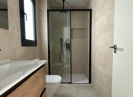 Check out these stylish modern three bedroom two bathroom penthouse with roof solarium located in San Pedro de Pinatar opposite a pretty park. Great position as close to lots of lovely bars and restaurants and all the amenities you could need. San Pedro has great transport links. The med beach is just a 25 minute walk up the walkway past the salt flat and flamingos and the mud baths and Mar Menor beaches are just a 30 min walk away. This is a small development of 10 apartments of two and three bedrooms with a communal pool area and private gym. There is an optional extra of having your own private pool in your garden if ground floor or on roof solarium if top floor. There is underground parking and store room included for each property. On entering the apartment you will find a bright open plan kitchen lounge diner with patio doors to the garden. The master bedroom has walk through wardrobe, ensuite bathroom and has patio doors that lead to the garden. Two further bedrooms to the rear with fitted wardrobe and  there is also a separate family bathroom. Up stairs you will find your own private roof solarium. They come with video entry system, Leds, aerothermal boilers and they are thermally and acoustically insulated. there is preinstallation for vented AC and electric car charger.