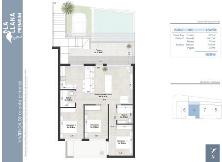 <strong>SPECIAL OFFERS APPLY - contact us for more information. </strong>We absolutely love these penthouse apartments as they come with everything you could need in the price. Located in San Pedro de Pinatar with all the amenities, cafes, bars and restaurants you could need, just a 20 minute walk to the beach and with great transport links from the bus station these apartments have it all. No need to pay more for extras as these come furnished and decorated like the show home, ducted AC with airzone, white goods and LEDS, aerothermal boiler, smart lock, fitted alarm, underfloor heating in the bathrooms, external sound speakers, private pool on roof solarium, enclosed summer kitchen, pergola, electric BBQ, artificial grass and a WC on roof solarium. They have thought about everything. These apartments are well thought out with a south westerly aspect making the most of the sun. You halve one flight of external stairs to reach the terrace from which you enter the property you encounter a bright modern open plan lounge kitchen diner of 35m2 with two patio doors leading to the garden giving lots of light. to the rear of the property are three double bedrooms with fitted wardrobes,, there is a family bathroom and the master bedrooms has its own ensuite bathroom. Up a further flight of stairs from the terrace you will find the spacious roof solarium that comes with an artificial grass area, 15m2 pool, summer kitchen which you can close up to protect from the weather, Pergola, electric BBQ, shower and wc which means you can stay up there all day without needing to go down to your apartment perfect for outside living. There is an allocated space per penthouse and a storeroom by the parking space. There are also ground floors available that have huge basements. Contact us to arrange to view the showhouse. Contact us to view the show home of these fabulous properties