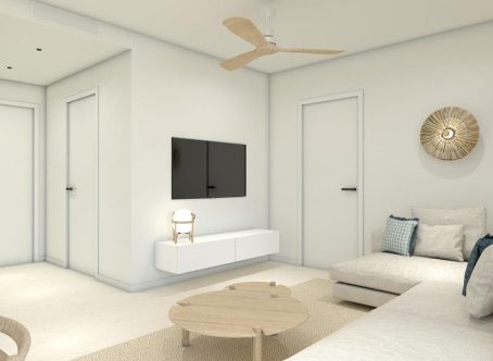 <strong>SPECIAL OFFERS APPLY - contact us for more information.</strong> This new build development is in an excellent location in the wonderful Mediterranean beach town of Torre de la Horadada. The beach is a 10 minute walk away with its sandy bays and cristal waters. The town of Torre de la Horadada has a fantastic array of bars and beach front restaurants to choose from. The main town of Pilar de la Horadada is a 5 minutes drive with supermarkets, banks and some great boutique shops. Mil Palmeras and Higuericas beaches are a 20 minutes walk. Alicante airport is 45 minutes drive and you have a range of golf courses on your doorstep including Lo Romero and Las Colinas. Stairs lead up to the properties front door which opens to a hallway off either side is a family bathroom and a double bedroom. The hall leads to the open plan kitchen which comes with white goods and a choice of colours for the cupboards. The lounge dining area has large patio doors that lead onto a terrace with stairs that go up to the spacious solarium which has a summer kitchen and a store room for the washing machine and boiler. From the lounge you will find the master bedroom has an ensuite and patio doors to the terrace. Both bathrooms and lounge have underfloor heating and all the bedrooms have fitted wardrobes. We love the Mediterranean "Mallorquina" style blue shutters that are on all the windows. These have an energy performance rating of A. There is a beautiful communal pool and garden are for the owners to use. The two penthouse apartments come with an underground parking space. There are also ground floors with two terraces. Contact us to arrange to view