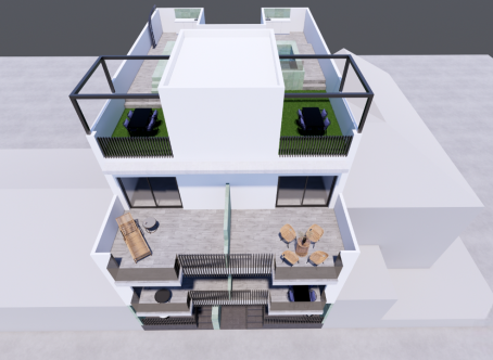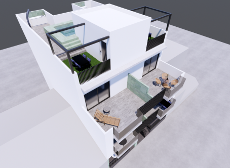 - Pergola areas with tables on communal solarium