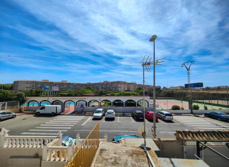 Top Floor 3 Bedroom apartment with Private Roof Terrace – Parque de las Naciones, Torrevieja This top floor apartment offers a fantastic opportunity in the popular Urb. Parque de las Naciones in Torrevieja, featuring a private roof terrace and a large east-facing front terrace overlooking the communal swimming pool. The property comprises a living room with dining area and integrated kitchen, three bedrooms, and a bathroom with a window, providing a comfortable and practical layout. The front terrace is perfect for enjoying the morning sun and views over the beautifully maintained communal areas, while the roof terrace offers unobstructed panoramic views, ideal for relaxing or entertaining. Residents benefit from a communal swimming pool set within lush gardens, as well as access to sports fields for leisure activities. Located in Torrevieja, a city originally known for its fishing industry, the area is famous for its two large salt lakes, one of which is a protected natural area. The untouched surroundings offer excellent opportunities for hiking and birdwatching, with large flocks of flamingos often seen, while the other “active” salt lake produces tons of salt annually and is renowned for its spectacular color. This property combines excellent outdoor spaces, a quiet community, and a prime location near nature and local amenities, making it an ideal choice for both permanent residence and holiday living.