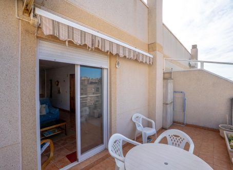 Top-Floor Apartment with Large Terrace and Open Views in Torrevieja This bright and well-presented apartment is situated on the fourth and top floor of a well-maintained building with lift access, offering enhanced privacy, abundant natural light, and a pleasant sense of space. The property comprises one comfortable bedroom, a modern bathroom, and a bright living area with an open-plan kitchen, creating a practical and inviting layout. The living room leads directly onto a spacious terrace of approximately 12 m², where you can enjoy open views and make the most of the Mediterranean climate-perfect for relaxing or dining outdoors. The apartment is equipped with split air conditioning in both the living room and bedroom, ensuring year-round comfort. The building itself is in good condition, providing a secure and convenient residential environment. Thanks to its top-floor position, generous outdoor space, and excellent natural light, this property represents a fantastic opportunity as a permanent residence, holiday home, or rental investment in Torrevieja.