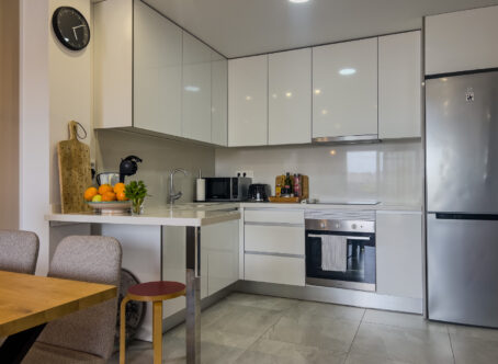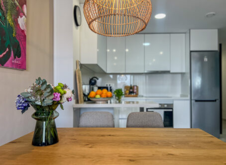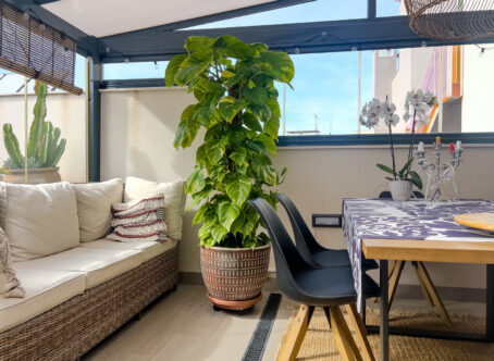 This stunning 2020-built penthouse with two bedrooms in the heart of Torrevieja offers everything you need for comfortable living! The spacious living room and modern open kitchen create a bright and airy feel, and the underfloor heating in the bathrooms adds a touch of luxury. With two sunny balconies and your own rooftop terrace, you can enjoy outdoor living all year round – the partially covered balcony is ideal as a winter room, while the rooftop terrace offers space for barbecuing and soaking up the sun. The community features a lovely pool area in the courtyard, as well as a Finnish sauna for ultimate relaxation. In addition, the apartment includes a private parking space in an underground garage with direct elevator access to the residential floor, making life easy and convenient. All of Torrevieja's central amenities, the beautiful church square, the promenade, and the swimming coves are within walking distance. This is a perfect home whether for year-round living or a holiday retreat! Property tax: approx. 220€/year Community fee: approx. 676€/year Welcome to visit this modern and stylish home!