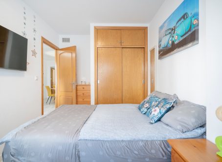 This two-bedroom apartment is located within a sought-after first-line residential complex in Playa de los Locos, Torrevieja, offering an excellent coastal lifestyle with immediate access to the beach and local amenities. Situated on the third floor with lift access, the apartment features two bedrooms with fitted wardrobes, one bathroom, and a bright open-plan living and dining area with an integrated kitchen. A separate utility room, accessed directly from the kitchen, adds practicality and additional storage space. From the living room, sliding doors open onto a private terrace overlooking the communal areas, providing a pleasant outdoor space to relax and enjoy the surroundings. The well-maintained residential complex offers a communal swimming pool with a tiled sunbathing area, ideal for enjoying the Mediterranean climate. The property also benefits from an underground parking garage, with one private parking space included in the sale. Its prime frontline position on Playa de los Locos places the apartment just steps from the beach and within walking distance of a wide range of shops, restaurants, cafés, and public transport, making it an excellent choice for holidays, permanent living, or investment.
