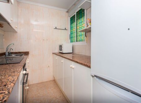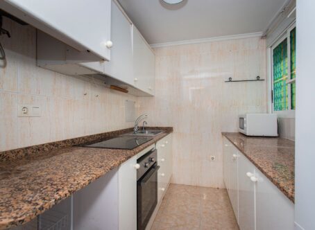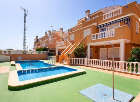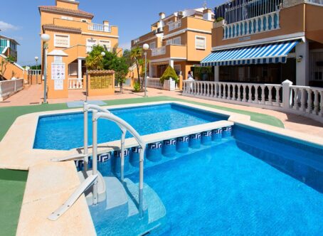 Located in a quiet and well-maintained residential area of Torrevieja, this charming duplex apartment offers stunning sea views and a comfortable lifestyle close to all amenities. Built in 1995, the property has a living area of 63 m² spread over two levels. It features 2 bedrooms, 1 full bathroom, and a separate guest toilet. The bright living-dining room and separate kitchen provide a cozy living space, while the south-facing 9 m² terrace is ideal for soaking up the sun and enjoying the view. A true highlight is the spacious 27 m² private rooftop terrace, equipped with its own barbecue – perfect for relaxing evenings with family or friends, all while enjoying panoramic sea views. The residential complex offers a communal swimming pool and a well-kept garden. Public parking is available in the immediate vicinity. Shops, restaurants, public transport, and beaches are all within easy reach, making this apartment an excellent choice as a permanent residence or holiday home. Property Features: Duplex apartment with 63 m² of living space 2 bedrooms, 1 bathroom + guest toilet South-facing terrace (9 m²) + large private rooftop terrace (27 m²) Sea views and quiet location Private BBQ on the rooftop terrace Communal pool and garden Public parking nearby Close to all amenities A move-in-ready home on the Costa Blanca with everything you need – don’t miss this opportunity!