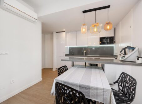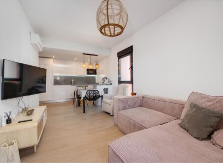We are delighted to present this stunning second-floor apartment in a modern building with elevator access. Designed for comfort and style, this bright and spacious home offers 87 m² of well-distributed living space, making it perfect for families, couples, or as a holiday retreat. The apartment comprises 2 generous bedrooms and 2 full bathrooms. Its east-facing orientation floods the interior with natural light in the mornings, creating warm and inviting spaces throughout. One of the standout features is the impressive 35 m² terrace - an ideal spot for al fresco dining, entertaining guests, or simply soaking up the sun. Sold fully furnished, the property boasts a tasteful and functional design, complemented by air conditioning for year-round comfort. A private underground parking space is included in the price, adding convenience and peace of mind. Residents also enjoy access to a beautifully maintained communal swimming pool, perfect for relaxing and making the most of the Mediterranean climate. This is an excellent opportunity for anyone seeking quality living, comfort, and an unbeatable location.