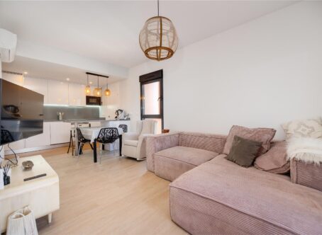 We are delighted to present this stunning second-floor apartment in a modern building with elevator access. Designed for comfort and style, this bright and spacious home offers 87 m² of well-distributed living space, making it perfect for families, couples, or as a holiday retreat. The apartment comprises 2 generous bedrooms and 2 full bathrooms. Its east-facing orientation floods the interior with natural light in the mornings, creating warm and inviting spaces throughout. One of the standout features is the impressive 35 m² terrace - an ideal spot for al fresco dining, entertaining guests, or simply soaking up the sun. Sold fully furnished, the property boasts a tasteful and functional design, complemented by air conditioning for year-round comfort. A private underground parking space is included in the price, adding convenience and peace of mind. Residents also enjoy access to a beautifully maintained communal swimming pool, perfect for relaxing and making the most of the Mediterranean climate. This is an excellent opportunity for anyone seeking quality living, comfort, and an unbeatable location.
