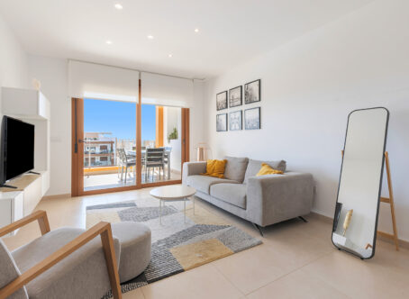 Second Floor Apartment in Villamartin, Orihuela Costa Discover this beautiful second-floor apartment in the sought-after area of Villamartin, Orihuela Costa. The property boasts three bedrooms, including a master bedroom with an en-suite bathroom. The spacious living room flows into a modern kitchenette and offers direct access to a generous 22m² terrace overlooking the lush communal gardens. Situated within the exclusive residential complex 'Gala,' residents can enjoy fantastic amenities such as a communal swimming pool, jacuzzi, and well-maintained gardens. The apartment also includes a private parking space for added convenience. Villamartin is a prestigious location known for its excellent services and amenities, nestled perfectly between renowned golf courses and the sea. Just a short distance away is La Zenia Boulevard, the largest shopping center in Alicante province. Nearby golf options include the Villamartin Golf Course, Real Club de Golf Campoamor, and Las Ramblas Golf Course. The area is surrounded by schools, shops, restaurants, pharmacies, and bus stops, making it ideal for year-round living. Easy connections to the national road N-332 and the Mediterranean highway AP-7 ensure effortless travel throughout the region.