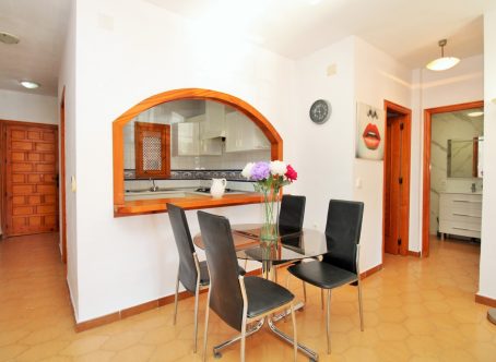 Bright and sunny south-facing 2-bedroom, 1-bathroom apartment for sale in the iconic Villamartin Plaza. Just metres from the renowned Villamartin Golf Course, this home enjoys an unbeatable location with a superb selection of bars, restaurants, cafés, and services on the doorstep. Ideal as a holiday home with excellent rental potential, the property also offers access to a communal pool. The apartment features an entrance hallway leading to a light-filled lounge and dining area, with French doors opening onto a sunny covered balcony. There is a separate kitchen, two double bedrooms with fitted wardrobes, and a refurbished modern bathroom with a walk-in shower. Additionally, there is a useful utility/storage room. The apartment is conveniently positioned on the first floor. Located just 4 km from the sandy Blue Flag beaches of Orihuela Costa and the popular Zenia Boulevard shopping mall, and approximately 45 minutes from Alicante and Corvera airports, this property offers the perfect combination of location, comfort, and lifestyle. Early viewings are highly recommended!