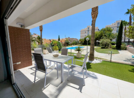 Charming 3-Bedroom Ground Floor Apartment in El Mirador de Villamartin Discover your dream home in the highly sought-after El Mirador de Villamartin! This spacious ground floor apartment combines comfort and convenience with excellent amenities in a vibrant location. Property Features: Bedrooms: 3 (2 doubles, 1 single), all with built-in wardrobes for ample storage Bathrooms: 2 well-equipped bathrooms, perfect for families and guests Living Area: Generous lounge/dining space, ideal for relaxing or entertaining Kitchen: Separate, fully functional kitchen, great for cooking enthusiasts Outdoor Space: Large rear terrace overlooking the community pool plus additional patio space on the side - perfect for soaking up the sun and outdoor living Storage: Handy storage room in the solarium for extra convenience Location: Nestled in a fantastic area close to numerous restaurants, bars, and local amenities, this property offers a vibrant lifestyle within easy reach. Don’t miss your chance to make this beautiful apartment your new home! Contact us today to arrange a viewing or get more information.