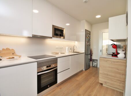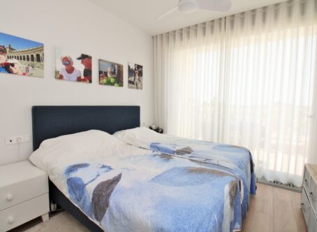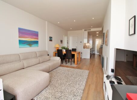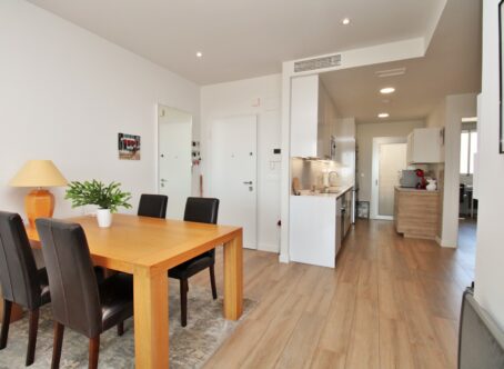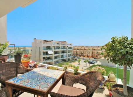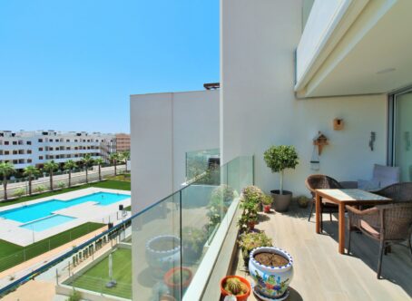 Immaculate South-Facing Penthouse with Sea Views in Los Dolses Perfectly positioned in the sought-after area of Los Dolses, this beautifully appointed south-facing penthouse apartment offers stylish, sun-filled living just a short stroll from a wide range of cafés, restaurants, and local amenities. A brief drive brings you to La Zenia Boulevard, several commercial centres, supermarkets, and the sandy beaches of Orihuela Costa. Located on the third floor of a secure, well-maintained complex with both lift and stair access, this bright and spacious apartment enjoys access to superb communal facilities, including a swimming pool, children's play area, and an outdoor gym-making it ideal for families, holidaymakers, or full-time residents alike. The modern open-plan layout seamlessly connects the living, dining, and kitchen areas, all equipped with full climate control for year-round comfort. The kitchen comes fully fitted with high-quality appliances and includes a separate utility room. There are two generously sized double bedrooms with built-in wardrobes. The master bedroom features an en-suite shower room, ceiling fan, and direct access to a private balcony with views over the manicured communal grounds. A second contemporary bathroom with a walk-in shower serves the rest of the home. Highlight Feature: A standout rooftop solarium offers panoramic views over the pool and towards the Mediterranean Sea. With both shaded and sunny areas, it’s the perfect spot to unwind, dine, or entertain while enjoying the Costa Blanca’s beautiful climate. Key Features: South-facing penthouse Private rooftop solarium with sea and pool views Two double bedrooms, two bathrooms (one en-suite) Air conditioning and ceiling fans Lift access and secure building entry Communal pool, children’s play area, and outdoor gym Walking distance to amenities and a short drive to beaches Meticulously maintained and move-in ready, this property presents a superb opportunity for those seeking a turnkey holiday home or a stylish permanent residence in one of the Costa Blanca’s most popular areas.