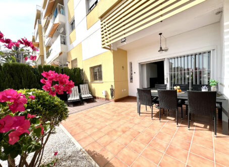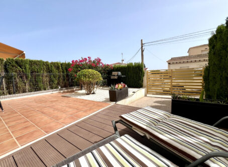Modern South Facing Ground Floor 2-Bedroom Apartment with Private Garden in Villamartin We are delighted to present this fantastic, modern ground floor apartment located in the sought-after Res. Anna, Villacosta, just a short walk from the lively La Fuente Commercial Centre in Villamartin. This beautifully maintained property offers comfort, style, and a prime location-perfect for holidaymakers, investors, or full-time residents. Property Overview 2 double bedrooms 2 bathrooms (including master en suite) Private garden Secure, gated complex Private parking space Ducted air conditioning throughout Sold fully furnished Interior Features Upon entry, you're welcomed into a bright and spacious open-plan living and dining area that flows seamlessly into a modern fully fitted kitchen. Large patio doors from the living area and the master bedroom open onto the private garden, creating a light-filled and airy atmosphere throughout the home. Both bedrooms are generously sized with built-in wardrobes, while the master benefits from its own en suite bathroom. The apartment also includes a second full bathroom, perfect for guests or family. Outdoor Living The private garden is part tiled and part laid with grass, providing a low-maintenance space ideal for sunbathing, relaxing, or entertaining. Key Benefits Less than a minute’s walk to La Fuente Commercial Centre (restaurants, shops, supermarket, pharmacy, golf shop, etc.) Walking distance to Campoamor and Las Ramblas Golf Courses Short drive to Villamartin Plaza and Villamartin Golf Club Easy access to beaches and local attractions Secure and well-maintained residential community Excellent condition and key ready Location Res. Anna offers one of the most convenient locations in the Villamartin area. Whether you're looking for daily essentials, dining options, or world-class golf courses, everything is within walking distance or a short drive away. This is a superb opportunity to purchase a high-quality apartment in a prime location with fantastic rental potential or the perfect low-maintenance holiday or permanent home. Contact us today to arrange a viewing or request a video tour. This property won’t stay on the market for long.