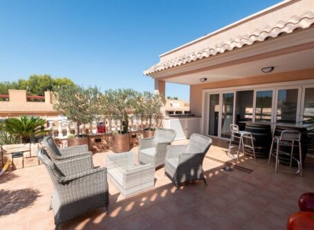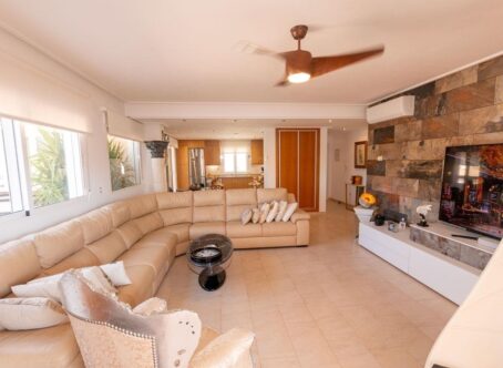 South-East Facing 3-Bedroom Apartment in Los Dolses, Villamartin This stunning second-floor apartment is located in the sought-after area of Los Dolses, Villamartin - a prime location on the Orihuela Costa, just a 4-minute drive to an excellent choice of supermarkets, bars, and restaurants, and less than 10 minutes from the beautiful sandy beaches of the Costa Blanca South. Designed for modern living, the property features a bright open-plan layout with a fully fitted kitchen and a spacious living and dining area, complete with air conditioning and direct access to a large corner terrace - perfect for relaxing or entertaining. There are three double bedrooms, all with fitted wardrobes and air conditioning. The master bedroom includes an en suite shower room, while a second contemporary shower room serves the rest of the home. An additional lounge area, featuring a pellet burner and pool table, provides a fantastic space for leisure and socialising, with further access to the expansive terrace. The terrace itself is equipped with an outdoor sink and a convenient storeroom, ideal for enjoying practical outdoor living. Residents of this well-maintained community enjoy outstanding facilities, including two swimming pools (one heated), a sauna, gym, and children’s play area. The apartment also benefits from underfloor heating throughout, secure underground parking, and beautifully landscaped communal gardens. A truly impressive property offering modern comfort, style, and exceptional convenience in one of the most desirable areas of the Costa Blanca South.