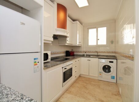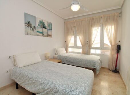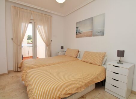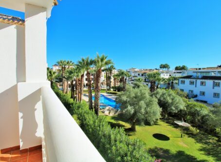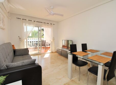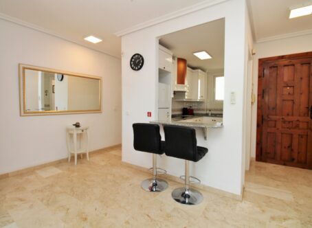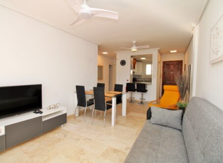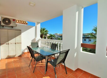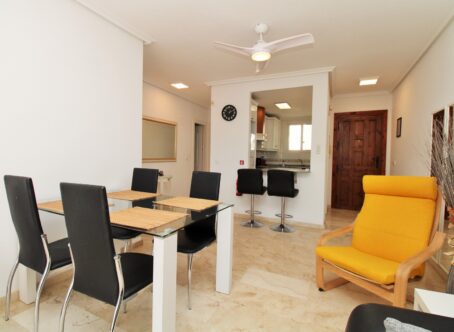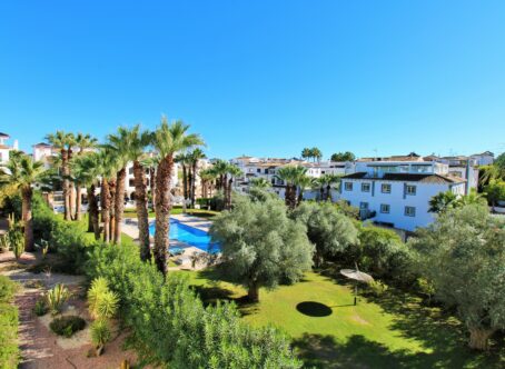 South-Facing Penthouse with Pool & Golf Views in Villamartin This impressive south-facing penthouse apartment offers stunning views over the communal swimming pool and the fairways of Villamartin Golf Course. Ideally situated just a short walk from Villamartin Plaza, residents enjoy a wide selection of restaurants, cafés, bars, and a supermarket on their doorstep. Sold furnished with white goods and in excellent condition, the property is ready for immediate occupancy. Interior Features The apartment features a bright, airy lounge-dining area with a fitted kitchen to the rear, leading onto a sunny covered balcony overlooking the pool and golf course. Two double bedrooms with fitted wardrobes include a main bedroom with direct access to the front balcony. A well-appointed family bathroom completes the interior. Community Amenities Set within a secure gated community, residents benefit from a communal swimming pool and beautifully maintained gardens. A large communal roof solarium provides additional outdoor space and panoramic views over the golf course and surrounding area. Prime Villamartin Location Just steps from Villamartin Plaza and the golf course, this penthouse combines convenience, comfort, and charm in one of the most desirable locations in Orihuela Costa. Properties in this block are rarely available-early viewing is strongly recommended.