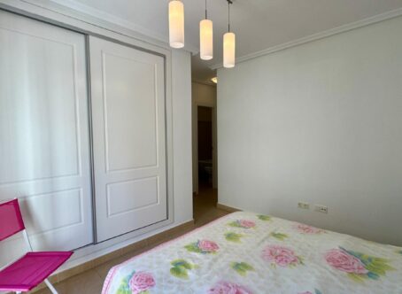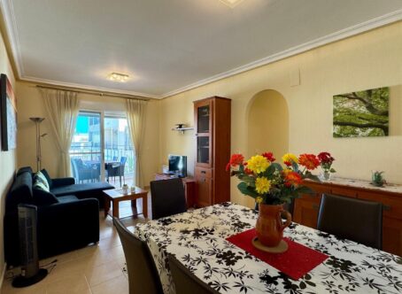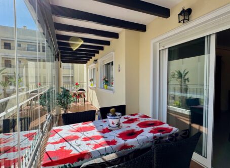 Apartment for Sale in Jardin del Alba, Villamartin, Orihuela Costa Located on the first floor of the well-maintained Jardin del Alba complex, this stylish, move-in ready apartment offers a perfect blend of comfort, convenience, and Mediterranean living. The property features three spacious bedrooms and two bathrooms, making it ideal for families, couples, or as an investment. The open-plan, fully equipped kitchen flows seamlessly into the bright living room, which is filled with natural light from large windows. The terrace is fitted with glass curtains, providing a versatile space for relaxation. The spacious terrace is perfect for enjoying a sunny breakfast or a balmy evening outdoors. The residential complex offers a range of facilities, including a fitness room, sauna, and a communal swimming pool surrounded by landscaped gardens. The apartment also includes an underground parking space and access via an elevator, ensuring both convenience and security. The apartment is sold fully furnished, allowing you to move in immediately and start enjoying life on the Costa Blanca. Contact us today for more information or to arrange a viewing.