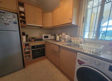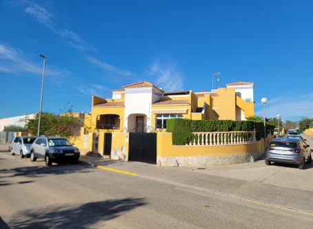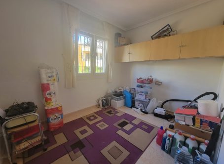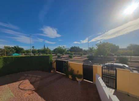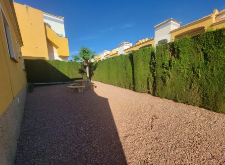 Semi-Detached Bungalow with a large with Private Garden and Solarium in Los Montesinos This well-maintained, single-level semi-detached bungalow is located in a quiet residential complex in Los Montesinos, featuring communal gardens and a swimming pool. With no neighbors above, the property offers privacy, comfort, and an excellent outdoor lifestyle. The home comprises an entrance porch, a spacious living room, and a fully equipped independent kitchen. There are two double bedrooms and one single bedroom, all with built-in wardrobes, as well as a modern bathroom with an Italian-style walk-in shower. A small utility room with a washing machine provides additional convenience. The property benefits from a glazed terrace and a large solarium with a pergola, offering open views over the surrounding landscape. The private, fenced garden of approximately 150 m² is planted with small trees and provides ample space for outdoor relaxation. Private parking is available within the plot, with direct access from the street. Additional features include air conditioning, windows in every room ensuring abundant natural light, and an east-facing orientation. The villa is offered unfurnished and is in very good condition throughout. The location provides clear views of fields and nearby lagoons and is within easy reach of all local amenities, including supermarkets, cafés, and the town center of Los Montesinos. The Greenland’s Sport Club leisure area is nearby, and the beaches of Guardamar and La Mata are approximately 20 minutes away by car. This property is ideal for those seeking a peaceful residential environment while enjoying the Mediterranean climate all year round.