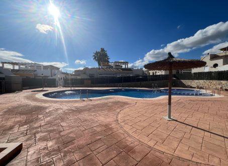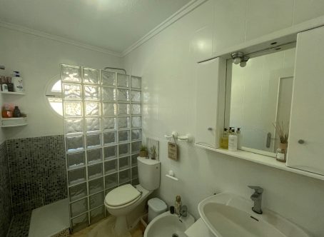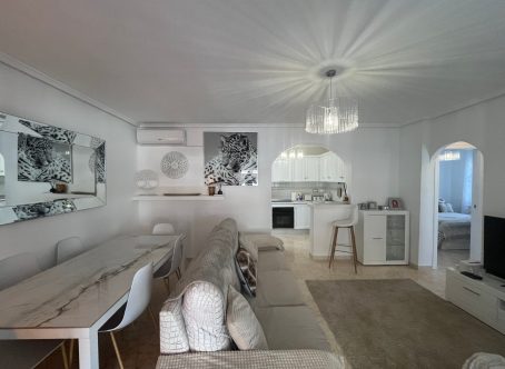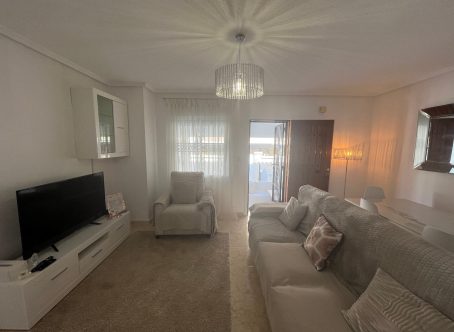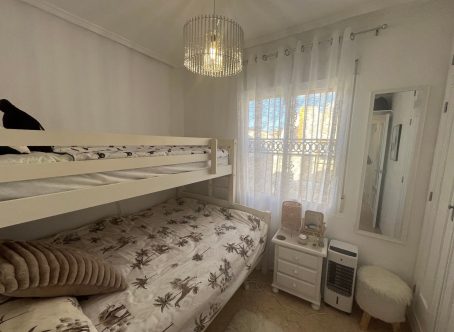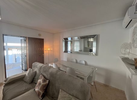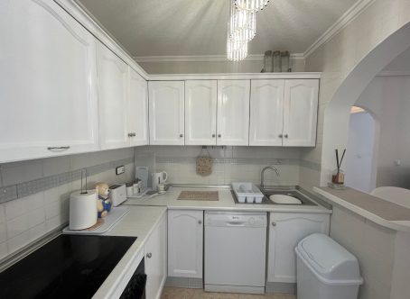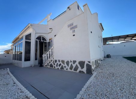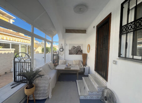 This beautifully maintained 2-bedroom, 1-bathroom bungalow is situated in the highly sought-after area of Punta Prima, Costa Blanca, offering a fantastic opportunity for anyone looking for a comfortable home in a vibrant coastal location. The property is presented in very good condition throughout and is being offered for sale partly furnished, making it an ideal option for immediate enjoyment as either a permanent residence or a holiday home. Upon entering, you are welcomed into a bright and inviting lounge/dining area, fitted with hot and cold air conditioning for year-round comfort. The open-plan modern kitchen flows seamlessly from the living space and is complemented by a separate utility room, providing extra convenience and storage options. The bungalow offers two double bedrooms, each featuring fitted wardrobes, ensuring plenty of practical storage. A contemporary family shower room completes the interior space, finished to a modern standard. To the front of the property, a glazed-in terrace creates a cosy, additional seating area that can be enjoyed in all seasons. Outside there is a generous front and side garden, offering ample space for relaxation or outdoor dining, along with a driveway for off-road parking. An external staircase leads up to the private solarium, a fantastic sun-drenched area complete with built-in storage cupboards and pleasant views towards the sea-perfect for enjoying the Mediterranean climate. Additional under-stair storage adds even more practicality to this well-designed property. Located within easy reach of local amenities, beaches, restaurants, and supermarkets, this bungalow combines comfort, convenience, and excellent outdoor space in one of the Costa Blanca’s most popular coastal areas.