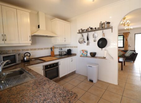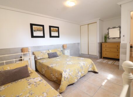 Spacious South-Facing 5-Bedroom Villa with Private Pool – Lo Crispin, Costa Blanca South This impressive south-facing 5-bedroom detached villa is perfectly positioned in the sought-after residential area of Lo Crispin, just a five-minute walk from local shops, bars, and restaurants, and only 15 minutes by car from the beautiful Costa Blanca beaches. Offering stunning sunset and mountain views, the property combines Mediterranean charm with spacious, practical living. Set on a 226 m² plot with a 151 m² build, the villa features a welcoming lounge leading onto a covered front terrace, perfect for morning coffee or shaded al fresco dining. The separate fully fitted kitchen offers ample workspace and storage, while all bedrooms include fitted wardrobes and air conditioning for year-round comfort. The master bedroom boasts a private en-suite bathroom. The villa’s impressive underbuild, accessible externally, includes a generous lounge area, two additional double bedrooms, and a shower room, ideal for guests or extended family. Additional storage is provided by a useful room under the rear staircase with external access. Outside, the low-maintenance tiled garden features: 8x4 private swimming pool Off-road parking Retractable sun awnings Access to communal and municipal pools Private solarium with internal and external access Security is enhanced with window grills fitted throughout, ensuring peace of mind. This villa offers generous indoor and outdoor living space, making it an excellent choice for full-time living or a luxurious holiday retreat in the sun-drenched Costa Blanca South.