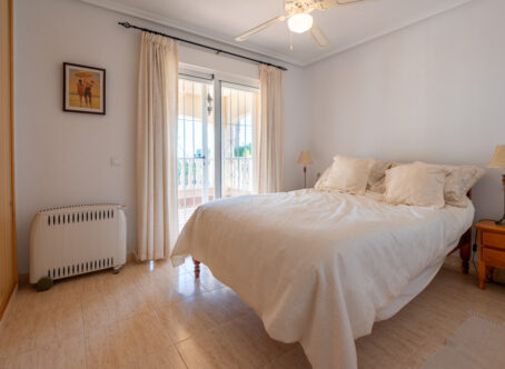 Home Costa Blanca are pleased to present this superb detached villa in the Urbanization of Lomas de La Juliana, located in the Costa Blanca South Region. This peaceful and well maintained urbanization is very popular due to its fantastic surrounding’s and view’s, right by the tennis club with many different sport facilities, fitness classes, outdoor pool and bar/restaurant. This villa is surrounded by a plot of land of about 1045 m2, with its own private pool, and very well maintained garden’s. As you enter the property you will find the separate kitchen on your left, 2 double bedrooms and a family bathroom, with a jacuzzi bathtub. In the living room there is a stunning high ceiling, and fireplace, along with the dining room that has the double glass doors leading on to the balcony that wraps around the front of the villa, with outstanding panoramic views of the surrounding areas. Downstairs you have a second living room with big glass doors leading you straight out to the swimming pool, and garden with even more breathtaking views. You also have a further 2 double bedrooms, and downstairs shower room. There is also the possibility to add another bedroom downstairs. You have direct access to the garage from downstairs, giving you another entrance to the property without stairs. The private garage it big enough for one car as well as the long drive for any other vehicles off-road. This villa is a top quality TM construction built in 2004. With pre-installation in all the rooms to place ducted air conditioning if you wish. Sold furnished. Only a short drive or walk to the lovely village of Algorfa, or la finca commercial centre for all your amenities. Just across the road from the famous 5* La Finca Golf Resort. A 15-minute drive to the award-winning beaches of Guardamar. 35 minutes to Alicante airport or 45 minutes to Murcia airport