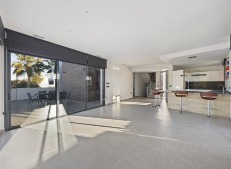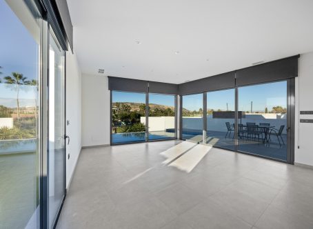 Stunning Front Line Golf Luxury Villa at La Finca Golf Located on one of the most privileged front line plots at La Finca Golf, this exceptional south-facing modern villa offers uninterrupted golf course and mountain views, complete privacy, and outstanding contemporary design. Set on an elevated 440 m² plot, the property delivers an abundance of natural light, seamless indoor–outdoor living, and one of the most private positions on the resort. No neighbouring properties overlook the pool, terraces, or solarium, creating a rare sense of exclusivity. The villa features 4 bedrooms, 3 bathrooms plus a guest WC, and a total built area of 300 m², including a unique 120 m² daylight-filled underbuild with striking glass windows into the infinity pool - a standout architectural feature rarely seen in Spain. The main living level offers a bright open-plan layout with high ceilings, floor-to-ceiling glazing, direct terrace and pool access, and panoramic views. The fully equipped designer kitchen includes premium Siemens appliances, dual ovens, an induction hob with integrated extractor, generous storage, and a breakfast bar island. Three bedrooms are located on the main level, including one en-suite, with two enjoying direct access to the pool terrace. The upper level is dedicated to the master suite, complete with a private bathroom and sliding doors opening onto a wrap-around solarium with far-reaching golf and mountain views. The versatile underbuild is flooded with natural light and includes a guest WC and full laundry area. It is ideal for use as a cinema room, gym, bar lounge, office, guest accommodation, or wellness area, remaining cool and comfortable throughout the year. Outdoor living is exceptional, with a south-facing infinity pool featuring underwater viewing windows, expansive sun terraces, low-maintenance landscaping, and a 65 m² rooftop solarium ideal for entertaining, relaxation, or sunset dining. Additional features include Mitsubishi Electric air conditioning, alarm system, electric shutters, high-speed fiber internet, private parking, dual front and rear access, and no community fees. The villa is within walking distance of restaurants, shops, spa facilities, golf academy, tennis and padel club, and is just 30 minutes from Alicante Airport. A rare opportunity to acquire a front line golf villa combining privacy, design, light, and location in one of southern Spain’s most sought-after resorts.