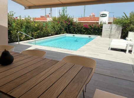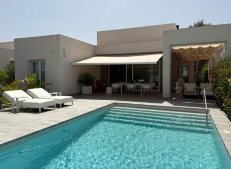 Move-in-Ready Villa in La Finca Golf Resort, Algorfa This elegant villa sits on a 500 m² plot within the prestigious La Finca Golf Resort in Algorfa - one of the Costa Blanca’s most exclusive golf destinations. With stylish design, premium finishes, and a prime location, it offers a unique lifestyle under the Spanish sun. Modern & Stylish Interior The home features 2 spacious bedrooms, 2 sleek bathrooms with underfloor heating, a guest toilet, and a bright open-plan living area. A third room is currently used as a dressing room/office but can easily be converted into an additional bedroom. The modern kitchen comes fully equipped with high-end appliances from Miele and Liebherr, ensuring both quality and functionality. Outdoor Living at Its Best The beautifully landscaped garden, complete with palm trees, flowers, and fruit trees, provides privacy and comfort. An east-facing terrace with a built-in BBQ is ideal for al fresco dining, while the private pool with wide entry steps is perfect for relaxing. Residents also enjoy access to a large communal pool within the resort. Key Features Smart home system (lighting, blinds & more) Electric shutters Air conditioning & alarm system EV charging point Satellite TV & sun awning Prime Location – La Finca Golf Resort Located within a secure, well-kept resort with a championship 18-hole golf course, luxury hotel, spa, fitness center, and tennis/padel courts. Just 15 minutes from the beaches of Guardamar and 35 minutes from Alicante Airport. Note: Furniture not included, but available for purchase separately. Don’t miss this opportunity to own a one-of-a-kind villa in La Finca Golf Resort. Contact us today to arrange a viewing!