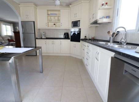 This Imposing 216m2, Three Bedroom, Detached Villa in Lomas de La Juliana is located in a very sought after residential area, with a tennis club at the entrance and La Finca 5* hotel, spa and golf course right on the doorstep, where you can also find a variety of eating places and shops. Main chain supermarkets can be found in Almoradi and Benijofar which are just 5 minutes by car. The beaches along the coast by car are approximately 20 minutes away. This outstanding home occupies a 1220m2 private landscaped plot with the most extensive views you will find in the area. The main living area of the villa is accessed via external staircase to an ´L´shaped covered terrace area, this then provides access into the lovely light living area, having a set of sliding doors and three sets of windows, feature open fireplace; incredible fitted kitchen/breakfast room; double bedroom and a family shower room. The ground floor of the property is accessed externally and comprises of lounge, archway into the fitted kitchen, bathroom and two double bedrooms. The garden is pebbled and tiled with a long driveway leading to a garage and a carport; the pool area has tiled surround and there are plenty of mature trees, bushes, palm trees surrounding. Extras include underfloor heating throughout the main floor, air conditioning, fitted wardrobes in all bedrooms, irrigation system.