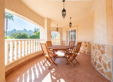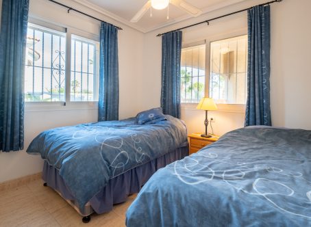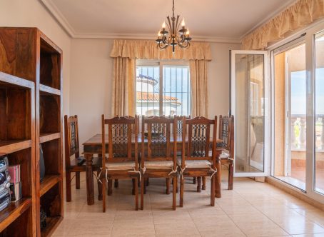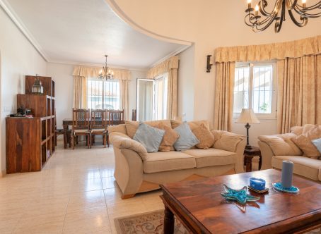 Home Costa Blanca are pleased to present this superb detached villa in the Urbanization of Lomas de La Juliana, located in the Costa Blanca South Region. This peaceful and well maintained urbanization is very popular due to its fantastic surrounding’s and view’s, right by the tennis club with many different sport facilities, fitness classes, outdoor pool and bar/restaurant. This villa is surrounded by a plot of land of about 1045 m2, with its own private pool, and very well maintained garden’s. As you enter the property you will find the separate kitchen on your left, 2 double bedrooms and a family bathroom, with a jacuzzi bathtub. In the living room there is a stunning high ceiling, and fireplace, along with the dining room that has the double glass doors leading on to the balcony that wraps around the front of the villa, with outstanding panoramic views of the surrounding areas. Downstairs you have a second living room with big glass doors leading you straight out to the swimming pool, and garden with even more breathtaking views. You also have a further 2 double bedrooms, and downstairs shower room. There is also the possibility to add another bedroom downstairs. You have direct access to the garage from downstairs, giving you another entrance to the property without stairs. The private garage it big enough for one car as well as the long drive for any other vehicles off-road. This villa is a top quality TM construction built in 2004. With pre-installation in all the rooms to place ducted air conditioning if you wish. Sold furnished. Only a short drive or walk to the lovely village of Algorfa, or la finca commercial centre for all your amenities. Just across the road from the famous 5* La Finca Golf Resort. A 15-minute drive to the award-winning beaches of Guardamar. 35 minutes to Alicante airport or 45 minutes to Murcia airport