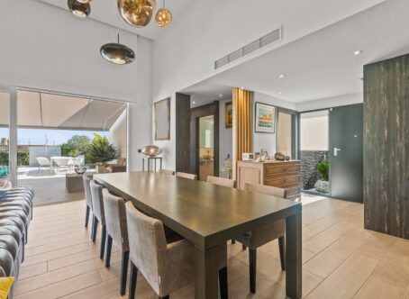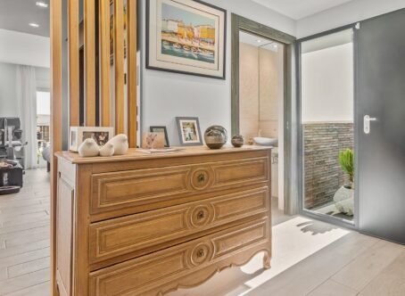 This exquisite detached villa offers a perfect combination of modern luxury and timeless elegance. It consists of two large en-suite bedrooms, the master bedroom being the one with a spacious dressing room, offering functionality and comfort. It has a guest toilet and all rooms are on one main floor for convenience. The designer kitchen is open plan and has direct access to the landscaped garden, ideal for al fresco dining and relaxing. The house, in its original design, had three bedrooms. However, the owner has made a strategic reconfiguration of the spaces, transforming them into two large master bedrooms and a functional room for an office and clothing organization, equipped with integrated closets. This modification brings a remarkable balance between comfort and practicality, optimizing the use of each room to the maximum. The outdoor area is a private oasis, with a 7 by 4 meter swimming pool surrounded by elegantly furnished terraces that offer a perfect mix of sunny and shaded areas. Private parking includes an electric car charging point, adding convenience and state-of-the-art technology to the villa. Located in an exclusive neighbourhood within walking distance of the prestigious La Finca Golf Club and La Finca Hotel & Spa, this villa is just 15 minutes drive from the blue flag beaches of Guardamar del Segura and 45 minutes from Alicante International Airport, offering a privileged location to enjoy a luxury Mediterranean lifestyle. The owners are open to receive reasonable offers. Please do not hesitate to contact us for more information or to arrange a viewing.