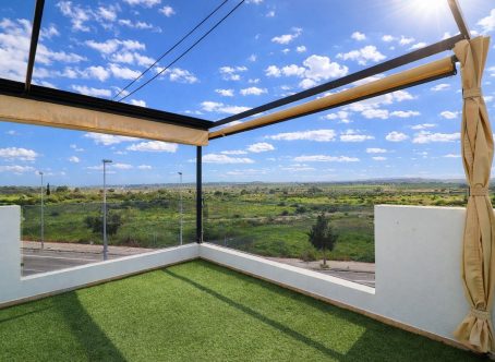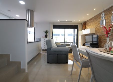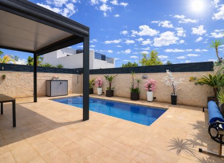 Three Bedroom Detached Villa in Benijófar, Costa Blanca South This stunning three bedroom detached villa is located on the outskirts of Benijófar, offering easy access to a full range of local amenities including restaurants, schools, municipal sports facilities, a pharmacy, veterinary clinic, medical centre, and banks. Within a 10-minute walk, you’ll find quality café bars, restaurants, and a small supermarket, while larger chain supermarkets in Benijófar, Quesada, and Rojales are just a short drive away. La Marquesa Golf Course is only 10 minutes by car, and the beautiful beaches of Guardamar can be reached in approximately 15 minutes. Set over two floors with a 103m² build, the ground floor features a bright living area with large double sliding glazed doors opening onto the tiled garden and private pool. The open-plan modern kitchen is finished in white and includes a utility area and direct access to the outside. Also on the ground floor is a double bedroom with en suite shower room and patio access, plus a convenient cloakroom. The first floor comprises two further double bedrooms and a family shower room. External steps lead to a private 45m² solarium with artificial grass, a covered entertainment and dining area with retractable sun blinds, and a practical work space with electricity and storage. The fully walled garden is low-maintenance and tiled, featuring off-road parking, a pergola with an insulated roof, and a private heated swimming pool. Additional features include built-in wardrobes, ducted air conditioning, and solar panels providing hot water. This modern, beautifully presented villa offers an exceptional combination of comfort, style, and location in the highly desirable Costa Blanca South.