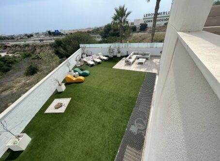 Stunning Modern Villa on a prime location in Cabo Roig! Discover this exquisite 4-bedroom, 4-bathroom villa located in the prestigious Palm Beach I. Residential Palm Beach I is a gated community of 31 high-quality detached villas. Designed for modern living, this beautiful home spans 4 floors and offers breath-taking views of the surrounding green areas and the sea. Property Highlights: 4 Spacious Bedrooms & 4 Bathrooms Master Suite with Private Balcony & Floor-to-Ceiling Glass Window Modern Open-Plan Living Space with High Ceilings– A bright and airy interior designed for comfort and style. Spacious Basement with 2 bedrooms, living room, dressing room and bathroom. Private Driveway – Secure and convenient parking. Large Plot of 360m² – Ample outdoor space to enjoy the Mediterranean climate. Internal Build of 127m² – A thoughtfully designed layout maximizing space and natural light. Several terraces – with a large Solarium to enjoy the breath-taking views. Surrounded by Natural Beauty – Stunning green and sea views create a peaceful ambiance. Perfect for enthousiasts who love the prestigious Cabo Roig, nature lovers, or anyone seeking a luxurious retreat, this villa seamlessly blends modern architecture with idyllic surroundings. Don't miss this opportunity! Contact us today for more information or to schedule a viewing!