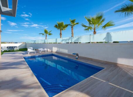 Stunning Modern Villa on a prime location in Cabo Roig! Discover this exquisite 4-bedroom, 4-bathroom villa located in the prestigious Palm Beach I. Residential Palm Beach I is a gated community of 31 high-quality detached villas. Designed for modern living, this beautiful home spans 4 floors and offers breath-taking views of the surrounding green areas and the sea. Property Highlights: 4 Spacious Bedrooms & 4 Bathrooms Master Suite with Private Balcony & Floor-to-Ceiling Glass Window Modern Open-Plan Living Space with High Ceilings– A bright and airy interior designed for comfort and style. Spacious Basement with 2 bedrooms, living room, dressing room and bathroom. Private Driveway – Secure and convenient parking. Large Plot of 360m² – Ample outdoor space to enjoy the Mediterranean climate. Internal Build of 127m² – A thoughtfully designed layout maximizing space and natural light. Several terraces – with a large Solarium to enjoy the breath-taking views. Surrounded by Natural Beauty – Stunning green and sea views create a peaceful ambiance. Perfect for enthousiasts who love the prestigious Cabo Roig, nature lovers, or anyone seeking a luxurious retreat, this villa seamlessly blends modern architecture with idyllic surroundings. Don't miss this opportunity! Contact us today for more information or to schedule a viewing!