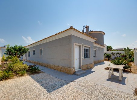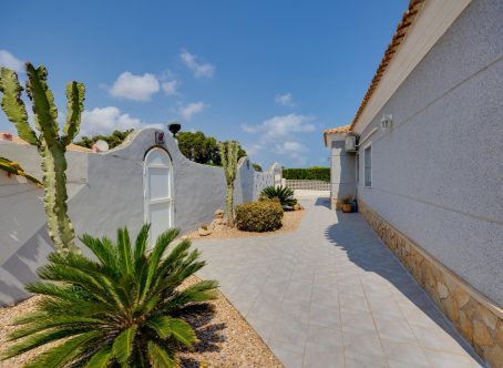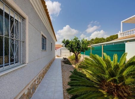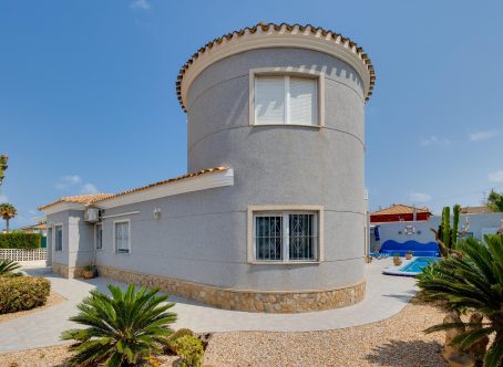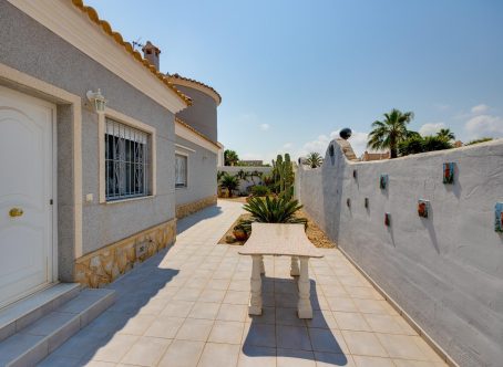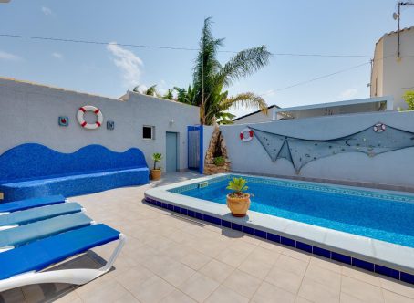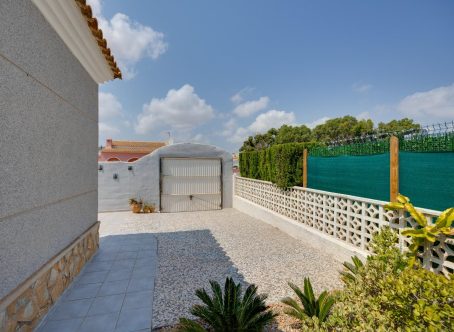 Exceptional Investment Villa with Tourist License La Regia – Cabo Roig This outstanding detached villa is located in the highly sought-after area of La Regia, Cabo Roig, within close proximity to Aguamarina Beach and the renowned Cabo Roig coastline. The property represents an excellent lifestyle and investment opportunity, benefiting from a tourist license and a highly versatile layout. Set on a generous plot of approximately 660 m², the villa offers a total built area of approximately 340 m², including garage spaces, and approximately 250 m² of living accommodation. The property is impeccably maintained and designed to maximize privacy, comfort, and rental potential. Property Layout The villa is divided into four fully independent apartments, each comprising: One bedroom One bathroom Private living room Kitchenette This configuration makes the property ideal for holiday rentals, multi-family use, or a combination of personal use and income generation. Outdoor Living From the spacious enclosed porch, there is direct access to a private swimming pool (approximately 9.5 m x 3.5 m), complemented by an outdoor shower. The outdoor area also features: A dedicated barbecue and outdoor kitchen area Pergola-shaded seating for entertaining Low-maintenance landscaped gardens with mature ornamental plants Additional Features Large garage with access from a secondary street, enhancing security and convenience Multiple storage rooms and laundry facilities Diesel-powered central heating system Additional garage space currently rented, providing immediate income Outdoor parking available on the plot Location The villa is ideally positioned near: Aguamarina Beach and Cabo Roig seafront Zenia Boulevard Shopping Center, offering a wide range of retail outlets, restaurants, and leisure facilities Numerous bars, restaurants, and essential services This prime coastal location ensures strong rental demand year-round and an excellent quality of life. Key Property Specifications Property Type: Independent Villa Location: La Regia, Cabo Roig Tourist License: Yes Year of Construction: 2000 Accommodation Bedrooms: 5 Bathrooms: 4 Living Rooms: 2 Kitchen: 1 Roof Terrace: 24 m² Built Areas Ground Floor Built area: 189 m² Usable area: 164 m² First Floor Built area: 30 m² Usable area: 24 m² Plot Dimensions: 25.60 m x 22.40 m Plot area: approx. 573.44 m² Total land area (including garages): approx. 656.80 m² Garages & Parking Two garages: 83.20 m² (one currently rented) Additional rented garage: 17.28 m² Outdoor parking space: 1 Outdoor Features Swimming pool: approx. 3.5 m x 9.5 m Outdoor kitchen and barbecue area Storage rooms: 2
