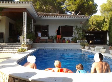 Rare opportunity to purchase this spectacular property in Calas de Campoamor with open sea views, just 100m from the beach. This 3 bedroom, 3 bathroom villa boasts a heated saline swimming pool installed less than 2 years ago along with a private solarium and underground garage and storage room. Located in a gated complex this property has been maintained to a very high standard with a sleek brand new kitchen and very attractive marble flooring throughout. On the ground floor there is fantastic living and dining room with floor to ceiling patio doors leading outside the the tiled terrace and swimming pool which has been finished with artificial grass. On the first floor you with find the master bedroom that enjoys sea views and en-suite bathroom along with two double guest bedrooms and the family bathroom all with views towards the sea or the communal swimming pool. On the top floor you will find the fabulous solarium with more stunning views of the Mediterranean and down towards the Mar Menor. The villa has an underground garage and storage accessed via an internal staircase, where you can conveniently access your car and exit the complex via electric doors. The house forms part of a well maintained complex where home owners also have use of the huge communal swimming pool and pretty garden. The property is sold as seen, fully furnished with many, many extras including independent laundry room, new air-conditioning units in the bedrooms, brand new kitchen appliances, non-chemical saline heated pool system, automated garage doors, intercom entry system, open fireplace in the living room and purpose built barbecue on the main terrace.Calas de Campoamor is a sought after location with all amenities within a few minutes walking distance including an international supermarket and bakery, 24hr pharmacy and medical centre along with a vast array of restaurants, cocktail and tapas bars.