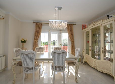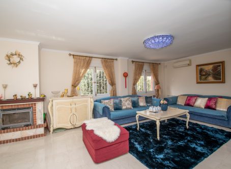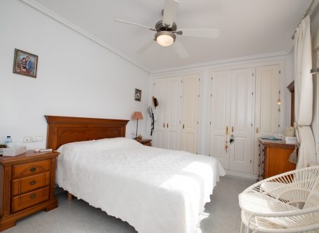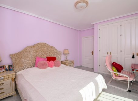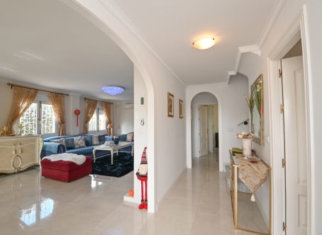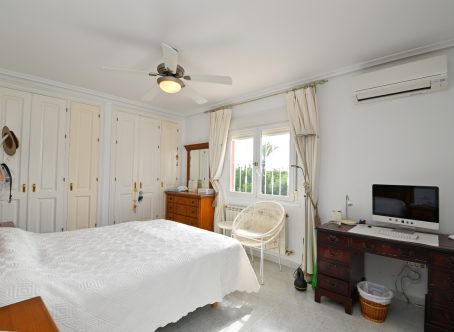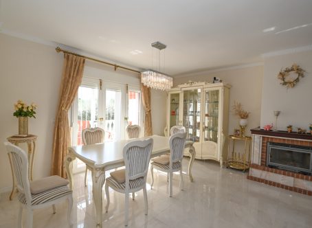 This four-bedroom villa in Campoamor enjoys a privileged corner position with open views across the golf course, combining a sought-after location with a practical layout suited to both full-time living and use as a second home on the Costa Blanca. The property offers privacy, excellent natural light, and direct fairway views, while remaining just a short walk from the La Fuente commercial centre and the Campoamor golf clubhouse. The villa has a total built area of 234 m² set on a manageable plot and is arranged over two levels. Outdoor spaces include a private swimming pool, tiled terraces, and shaded parking, creating an easy, low-maintenance lifestyle. With gas central heating, hot and cold air conditioning, and modernised interiors, the home is well prepared for comfortable year-round living. Ground Floor A covered front terrace leads into the entrance hall, which provides access to a fully fitted kitchen with a separate utility room and pantry. This layout offers generous storage and workspace, keeping the kitchen both practical and well organised. The main living and dining area has been updated with new floor tiling and features a striking marble-faced wall with an open log fireplace. This creates a modern yet welcoming focal point, ideal for cooler evenings. Also on this level is a versatile room currently used as a guest area, equally suitable as a double bedroom, along with a modernised guest cloakroom. Having a bedroom on the ground floor makes the property particularly well suited to multigenerational living or hosting guests comfortably. First Floor The upper floor comprises three additional bedrooms and two bathrooms. The master suite benefits from fitted wardrobes, a shower room with jacuzzi bathtub, and direct access to a private terrace with golf course views. Two further double bedrooms, both with built-in wardrobes, share another sun terrace, ensuring all bedrooms enjoy natural light and outdoor access. A family shower room serves these bedrooms. Terraces on this level overlook the golf course and surrounding greenery, enhancing the sense of space and connection to the landscape. Outdoor Areas The exterior of the villa has been designed for low-maintenance living. The garden is predominantly tiled, with fruit trees adding character without demanding upkeep. The private swimming pool measures 9 m x 4.8 m, offering ample space for swimming and relaxation, with room around it for sun loungers and seating. A large garage and hardstanding provide parking for two vehicles. At the front of the property, a sun terrace enjoys uninterrupted golf views. Thanks to the corner plot, the outdoor areas feel private and open, while shaded parking and a private garage add further practicality. Additional features include double glazing throughout, new ground-floor floor tiling, gas central heating, and hot and cold air conditioning. The villa was originally constructed as a five-bedroom property, with one bedroom removed to create a more spacious living area. The property is sold part furnished, allowing buyers to move in with ease while still offering scope for personalisation. Campoamor is one of the most established and desirable residential areas on the southern Costa Blanca, renowned for its golf course, proximity to beaches, and excellent amenities. Shops, supermarkets, cafés, restaurants, and the golf clubhouse are all within walking distance. The nearby coastline of Campoamor, Cabo Roig, and La Zenia offers sandy beaches, marinas, and scenic coastal walks. Excellent road connections via the AP-7 and N-332 provide easy access to Alicante and Murcia airports, making the area highly accessible year-round. This combination of golf, coastline, and convenience continues to make Campoamor a firm favourite with international buyers.
