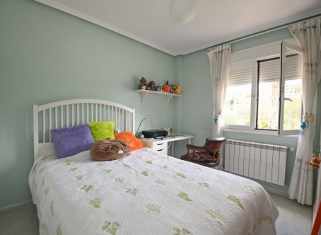 This four-bedroom villa in Campoamor enjoys a privileged corner position with open views across the golf course, combining a sought-after location with a practical layout suited to both full-time living and use as a second home on the Costa Blanca. The property offers privacy, excellent natural light, and direct fairway views, while remaining just a short walk from the La Fuente commercial centre and the Campoamor golf clubhouse. The villa has a total built area of 234 m² set on a manageable plot and is arranged over two levels. Outdoor spaces include a private swimming pool, tiled terraces, and shaded parking, creating an easy, low-maintenance lifestyle. With gas central heating, hot and cold air conditioning, and modernised interiors, the home is well prepared for comfortable year-round living. Ground Floor A covered front terrace leads into the entrance hall, which provides access to a fully fitted kitchen with a separate utility room and pantry. This layout offers generous storage and workspace, keeping the kitchen both practical and well organised. The main living and dining area has been updated with new floor tiling and features a striking marble-faced wall with an open log fireplace. This creates a modern yet welcoming focal point, ideal for cooler evenings. Also on this level is a versatile room currently used as a guest area, equally suitable as a double bedroom, along with a modernised guest cloakroom. Having a bedroom on the ground floor makes the property particularly well suited to multigenerational living or hosting guests comfortably. First Floor The upper floor comprises three additional bedrooms and two bathrooms. The master suite benefits from fitted wardrobes, a shower room with jacuzzi bathtub, and direct access to a private terrace with golf course views. Two further double bedrooms, both with built-in wardrobes, share another sun terrace, ensuring all bedrooms enjoy natural light and outdoor access. A family shower room serves these bedrooms. Terraces on this level overlook the golf course and surrounding greenery, enhancing the sense of space and connection to the landscape. Outdoor Areas The exterior of the villa has been designed for low-maintenance living. The garden is predominantly tiled, with fruit trees adding character without demanding upkeep. The private swimming pool measures 9 m x 4.8 m, offering ample space for swimming and relaxation, with room around it for sun loungers and seating. A large garage and hardstanding provide parking for two vehicles. At the front of the property, a sun terrace enjoys uninterrupted golf views. Thanks to the corner plot, the outdoor areas feel private and open, while shaded parking and a private garage add further practicality. Additional features include double glazing throughout, new ground-floor floor tiling, gas central heating, and hot and cold air conditioning. The villa was originally constructed as a five-bedroom property, with one bedroom removed to create a more spacious living area. The property is sold part furnished, allowing buyers to move in with ease while still offering scope for personalisation. Campoamor is one of the most established and desirable residential areas on the southern Costa Blanca, renowned for its golf course, proximity to beaches, and excellent amenities. Shops, supermarkets, cafés, restaurants, and the golf clubhouse are all within walking distance. The nearby coastline of Campoamor, Cabo Roig, and La Zenia offers sandy beaches, marinas, and scenic coastal walks. Excellent road connections via the AP-7 and N-332 provide easy access to Alicante and Murcia airports, making the area highly accessible year-round. This combination of golf, coastline, and convenience continues to make Campoamor a firm favourite with international buyers.