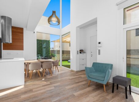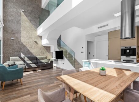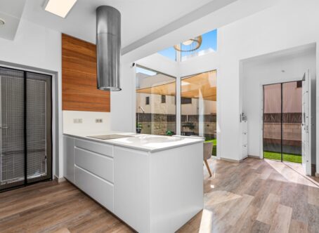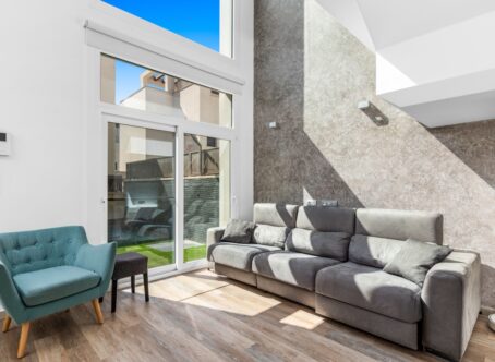 Located in a residential complex of 50 independent homes, this property offers a functional layout and comfortable living spaces. Built in 2018, it has a total area of 101 m² on a 182 m² plot, with three bedrooms and three bathrooms. The ground floor includes a living room with an integrated kitchen, a full bathroom, a bedroom, and a laundry area equipped with an 8 kg washer and dryer. The first floor features two additional bedrooms, one with an en-suite bathroom and access to a private terrace. The upper floor has a solarium with space for an outdoor kitchen and a jacuzzi installation. The outdoor area includes a private saltwater pool with an automatic cover, an artificial grass garden, and a designated parking space within the plot. The home is equipped with an aerothermal heating and cooling system, two automatic awnings, and a solar sail for shade. Additional features include built-in kitchen appliances, a Bosch Wi-Fi super-automatic coffee machine, automatic blinds, mosquito screens on windows and doors, glass shower enclosures, an interior and exterior security system, and a safe. The property is located in a quiet area with good access to nearby urban centers. For more information or to schedule a visit, please contact us.