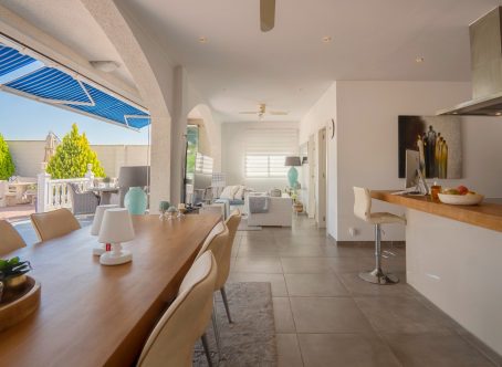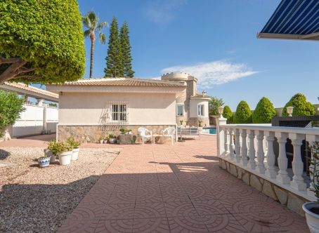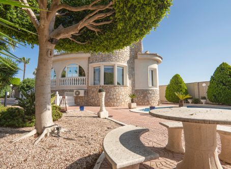 Exceptional Villa with Private Pool in Ciudad Quesada Step into your dream home with this stunning villa located in the peaceful and desirable Ciudad Quesada, Rojales, Alicante. Offering both elegance and comfort, this property is designed to maximize Mediterranean living with spacious indoor and outdoor areas, ideal for both relaxing and entertaining. Property Features: Impressive Design & Architecture: The villa features a unique and eye-catching turret design with natural stone, offering both aesthetic appeal and functionality. Its distinct architecture sets it apart from other properties in the area.Spacious & Light-Filled Interior: Inside, the open-plan living area is bathed in natural light, seamlessly connecting with the dining space and modern kitchen. The kitchen is equipped with high-end appliances and a stylish layout perfect for gourmet cooking.Private Pool & Outdoor Paradise: The expansive outdoor area is centered around a beautiful swimming pool surrounded by well-maintained gardens and lush greenery, offering the perfect place to enjoy the Mediterranean climate. The outdoor spaces are complemented by various seating areas, including a shaded dining space next to the pool for al fresco dining and entertaining.Relaxing & Inviting Living Areas: The villa’s outdoor lounge area, with comfortable seating, provides the ideal place to unwind or entertain guests while enjoying views of the private pool and manicured garden.4 Bedrooms, 4 Bathrooms: This villa boasts four generously-sized bedrooms, including a master suite that provides a peaceful retreat. Each bedroom is complemented by modern fixtures and ample natural light. Location Highlights: Located in Ciudad Quesada, this villa offers an exclusive yet welcoming lifestyle. With proximity to local shops, restaurants, and bars, and only a short drive from the beaches of Guardamar del Segura, this property blends peace with convenience. A Prime Investment in the Heart of Alicante Whether you are looking for a luxurious permanent residence, a tranquil holiday home, or a solid investment, this villa is a must-see. Contact us today to schedule a viewing and experience the elegance and charm of this exceptional property!