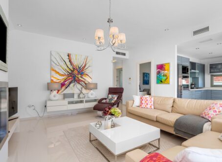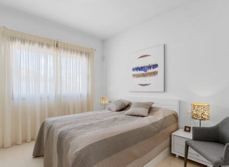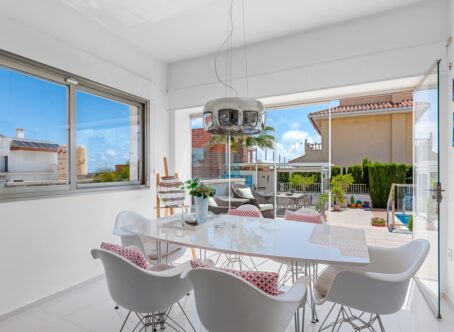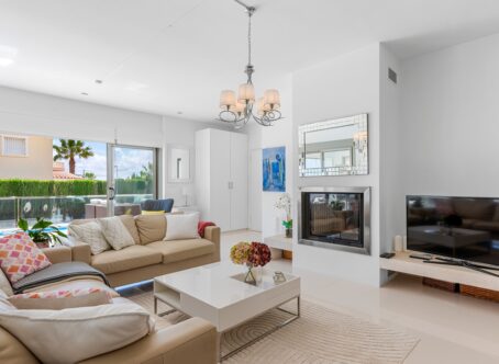 Modern luxury villa with beautiful views in a quiet area of Ciudad Quesada. The villa is set over two floors and has a total of 4 bedrooms, 3 bathrooms and a guest toilet. The main floor consists of two bedrooms where one of them has an en-suite bathroom. Furthermore it consists of a bright living room, open-plan kitchen, a glazed terrace that is being used as a dining room and a guest toilet / utility room. The first floor consists of two double bedrooms, both with en-suite bathrooms. From both of the bedrooms you have direct access to a large terrace. The house is equipped with central air condition (hot / cold), fireplace in the living room, double glazed windows, alarm system and fitted wardrobes in 3 of the bedrooms. It is sold furnished. Outdoor areaThe villa is set on a south-facing plot of 500 m2. Here you can find a lovely swimming pool with space next to it for sun beds. At the end of the pool there is an outdoor kitchen / BBQ area with a covered dining table. There is also a lovely terrace facing the pool with access from the living room and dining room where you can find a lounge area. On the plot you can also find parking for one car (automatic gate) and a storage room. In the first floor there is a large terrace with beautiful views over the area and the salt lake of Torrevieja. AreaNear the villa you will find a tennis court as well as a skate park. The golf course La Marquesa is only 3 km away, a short drive by car. The nearest supermarket is just 1 km away, and it's the same distance to the nearest neighborhood restaurants. Quesada town center, with several restaurants, bars, and shops, is about 2 km away. Driving to the nearest beach takes about 12 minutes.