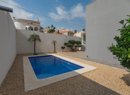 Modern 2-Bedroom Villa with Private Pool – Ciudad Quesada Discover comfort and style in this beautifully maintained 2-bedroom, 2-bathroom villa offering 76m² of living space on a private, low-maintenance plot. Built in 2018 and meticulously cared for, this single-level home is designed for effortless Mediterranean living. Property Highlights Private Pool & Sun-Drenched Patios – Perfect for relaxation and entertaining Rooftop Solarium – Panoramic views of La Marquesa Golf and the surrounding area Open-Plan Living – Bright lounge with a modern, fully equipped kitchen 2 Bedrooms, 2 Bathrooms – Built-in wardrobes and walk-in showers Low-Maintenance Garden – With private parking on the plot Key Ready – Completed in 2018, excellent condition throughout Lifestyle & Location Set in Ciudad Quesada, Rojales, this villa offers the perfect mix of convenience and leisure: Walking distance to La Marquesa Golf Course 10 minutes to the beaches of Guardamar and Torrevieja Restaurants, cafés, shops, and services close by Family activities including hiking, bowling, mini-golf, and a water park Less than 1 hour from Alicante Airport A Superb Opportunity Whether you’re looking for a holiday retreat, investment property, or permanent home, this modern villa combines style, comfort, and excellent rental appeal in one of the Costa Blanca’s most sought-after communities. Contact us today to arrange your viewing!