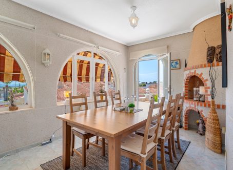 Mediterranean Villa For Sale – Ciudad Quesada Charming Mediterranean-Style Villa with Guest Apartment – Walking Distance to Ciudad Quesada Center This attractive Mediterranean-style villa is ideally located just a short walk from the main street of Ciudad Quesada, offering easy access to a wide range of amenities, restaurants, shops, and services. Property Overview Total living area: 238 m²Plot size: 500 m²Orientation: South-facingBedrooms: 3Bathrooms: 3 Main Floor The main level of the villa is thoughtfully designed for comfortable everyday living. It comprises: Two double bedroomsTwo bathrooms, including one en-suite to the master bedroomWelcoming entrance hallOpen-plan kitchenDining and living area with fireplaceGlazed terrace used as an additional living and dining space, with direct access to the pool area At the entrance of the villa, there is also a covered terrace, ideal for enjoying the outdoor lifestyle throughout the year. Lower Level – Guest Apartment The lower floor features a fully independent guest apartment, making it ideal for visitors or extended family. It includes: Living roomKitchenLarge bedroomBathroom Features and Equipment The villa is equipped with: Central gas heatingAir conditioningFireplace in the main living roomAlarm systemOsmosis water filtration system Outdoor Area Set on a beautifully maintained 500 m² plot, the outdoor space is designed for both relaxation and functionality: Saltwater swimming poolOutdoor showerCarportBBQ areaStorage roomMultiple outdoor seating areasTiled garden with mature plantsAutomatic irrigation system Location The villa enjoys a highly desirable location within walking distance of Ciudad Quesada’s main street, where a wide selection of amenities is available. This makes the property equally suitable as a permanent residence, holiday home, or investment property. A well-presented villa offering generous living space, excellent outdoor areas, and a prime location in one of the Costa Blanca’s most popular residential areas.