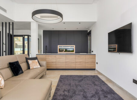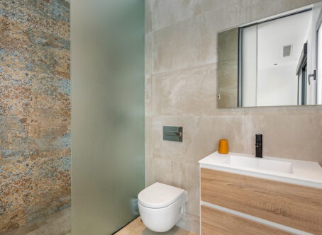 Luxury 5 bedroom / 6 bathroom villa with views in Ciudad Quesada. Beautiful luxury villa with a total living area of 333 m2 divided on two levels. It consists of a total of 5 double bedrooms, all of them with en-suite bathrooms, an additional bathroom and a guest toilet. The main floor consists of two bedrooms with en-suite bathrooms, a guest toilet, and a lovely open plan kitchen, living room and dining room. In the living area you have large sliding doors that opens up completely and gives a great indoor / outdoor living feature. The lower level consists of three bedrooms with en-suite bathrooms, a kitchen and utility room, a large living room, a bathroom, two storage rooms. The rooms in this level have access to a lovely patio. From the living room on this level you have direct access to the garage and techical room. The villa is equipped with central air condition (hot/cold), underfloor heating in the bathrooms, double glazes windows and security door. Outdoor areaThe villa is set on a lovely corner plot of 462 m2. The pool area is east facing, giving you amazing views over the surrounding area and to the sea. Around the pool you have a beautiful tiled area with space for several outdoor seating areas and sun beds. From the pool area you have external stairs leading you to the large roof terrace. Here you have one part that is tiled and the other part with artificial grass, both of them with a lot of space for outdoor entertainment and with amazing views. At the entrance to the house you have another lovely tiled garden area that faces west. This area is perfect to enjoy the afternoon / evening sun. At the lower level you can find a large tiled patio with an artificial vertical garden. This patio can be access from the garden through external stairs, and also from the living room and 2 of the bedrooms in the lower level.