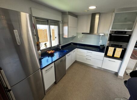Here we have a beautiful detached villa in the countryside just outside of Cox, on the Costa Blanca South. This spacious Villa with a plot of 454 m2 and build 167 m2, South facing and built in 2009 one owner from new and consists of the following: On the ground floor there is a large living area, separate WC, double bedroom with access to the garden and en-suite shower room, open plan dining area and fully fitted kitchen area with separate utility room off of the kitchen with access to the garden. Upstairs are two good size double bedrooms both with their own colour co-ordinated en suites, free standing bath in the master en-suite access to balconies and large solarium with amazing mountain views, On the outside, space for dining and sunbathing around the private pool, separate garage, and storage around the rear of the property. Many extras with this detached villa including hot and cold ducted air conditioning, underfloor heating and underfloor cooling throughout, electric shutters, electric drive gates, fitted wardrobes in all bedrooms, Garage and off road parking. A property with a lot of character and well worth a viewing! set in a tranquil location, close to amenities only 5 minutes drive into the main town, 25 minutes from Alicante airport. Over all this stunning property must be viewed.