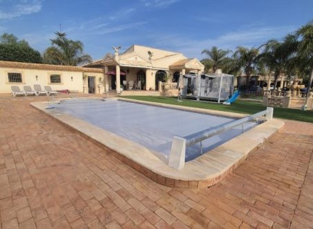 Luxury Detached Villa with Guest Apartment – Daya Vieja Countryside Located in the beautiful countryside of Daya Vieja, this exceptional luxury detached villa sits on an impressive 6,000 m² plot and offers 230 m² of elegant living space. The property features 4 bedrooms and 3 bathrooms in total, including a fully furnished, self-contained guest apartment. The main villa comprises three spacious bedrooms and two modern bathrooms. The master bedroom enjoys a private staircase leading to the solarium and benefits from a luxurious en-suite bathroom. Recently renovated throughout, the property perfectly blends traditional Mediterranean charm with contemporary comfort. The separate guest house includes a living room, kitchen, bedroom, and bathroom, making it ideal for visiting family and friends or as an excellent rental opportunity. This villa has been extensively upgraded and is completely energy self-sufficient, thanks to the installation of solar panels. Additional improvements include full electrical rewiring, central heating, new air conditioning throughout, and a brand-new modern kitchen. Externally, the south-facing garden is beautifully landscaped and enjoys excellent natural light. The outdoor space features a heated swimming pool, manicured green areas, a barbecue area, and an outdoor shower - ideal for year-round enjoyment. Access to the property is via electric gates, and further benefits include a garage, utility room, and additional storage space. The villa also offers both indoor and outdoor security systems, along with fibre optic internet. A rare opportunity for those seeking peace, privacy, and luxury living in a prime countryside location.