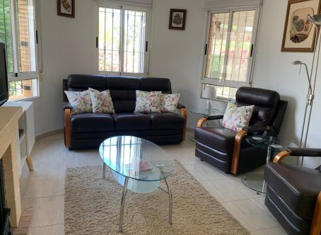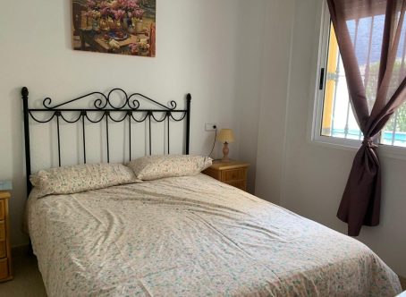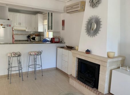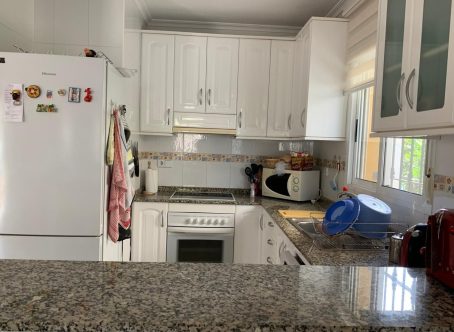 A beautifully presented detached villa in a prime location on El Raso, Guardamar del Segura, overlooking a parkland area and within a short walk of local amenities, restaurants and bars. The property is situated in a quiet community, just steps from the well maintained communal pool and gardens. The villa was built in 2004 and has been well maintained by the current owners who are selling the property fully furnished. With a plot size of approx. 200m2 it includes off-road parking with a carport, a tiled rear terrace with privacy screens plus a well established garden with mature trees and plants. This east facing property with a build size of approx. 100m2 comprises of a spacious terrace overlooking the garden to the front with access to a storage space to the side of the house. As you enter the villa you are greeted by an open plan living room with dining area and lounge which is flooded with lots of natural light and benefits from air conditioning, ceiling fan and a gas stove for the cooler months. There is a large breakfast bar to the open plan fully fitted kitchen, an under stairs storage cupboard, a shower room and double guest bedroom with fitted wardrobes and ceiling fan. Upstairs you will find two double bedrooms, each with patio doors leading to the large solarium with stunning views over the park and surrounding area. The master bedroom also has air conditioning and both bedrooms have fitted wardrobes and ceiling fans. There is also a family shower room. Viewing is highly recommended as this property is sure to move quickly.