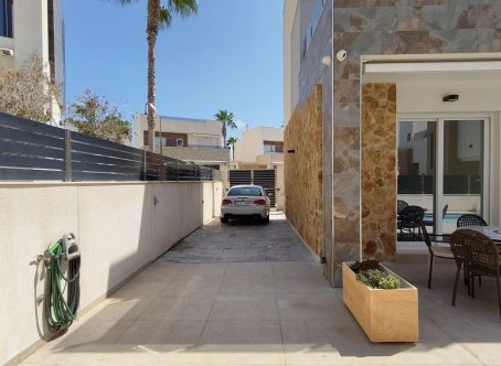 Exclusive South-Facing Villa Near La Mata Beach – Prime Location & Stunning Sea ViewsDiscover this magnificent luxury villa, built in 2018, in one of the most sought-after areas of the southern Costa Blanca. Ideally positioned just a 5-minute walk from La Mata Beach, this stunning home offers a prime coastal location, breathtaking sea views, and sun all day thanks to its perfect south-facing orientation.Situated within the prestigious El Amanecer I Villas complex, this property is surrounded by pristine beaches, beautiful coastal landscapes, fine dining restaurants, charming cafés, and all essential amenities-ensuring a relaxed and vibrant Mediterranean lifestyle.This spacious villa features 3 elegantly designed bedrooms with fitted wardrobes and 3 modern bathrooms. The bright open-plan living area seamlessly connects to a stylish fully equipped kitchen, while large windows flood the space with natural light, enhancing the home’s warm and inviting atmosphere. Step onto the covered terrace, where you can unwind while overlooking your heated private pool, surrounded by a lush, beautifully landscaped garden-your own piece of paradise.The upper level offers access to a large terrace from both bedrooms (both with en-suit bathrooms), leading to the expansive rooftop solarium. From here, enjoy unparalleled panoramic sea views, complemented by a BBQ area and outdoor dining space-ideal for relaxing or entertaining while soaking in the Mediterranean breeze.Designed for maximum comfort and luxury, this villa is equipped with high-tech appliances, ducted air conditioning (hot & cold), underfloor heating, electric shutters & awnings, heated pool and a state-of-the-art alarm system. It also features private covered parking within a secure gated community with access to two streets.