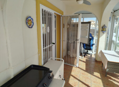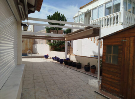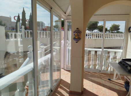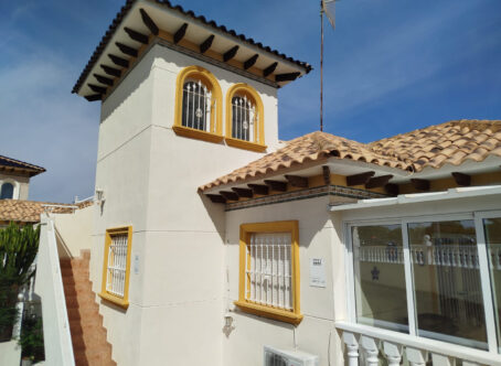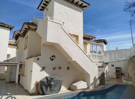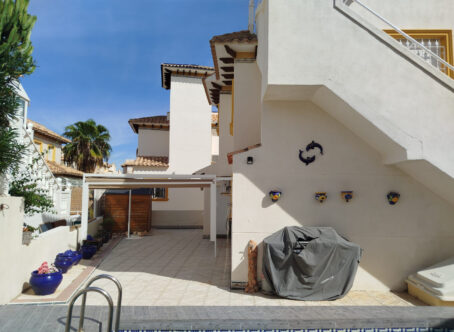 Detached Villa with Private Pool, Guest Apartment & Solarium in La Zenia Set in a quiet cul-de-sac in the sought-after area of Playa Flamenca / La Zenia, this attractive detached villa combines space, privacy, and flexibility. The property features a private swimming pool, off-road parking, and a self-contained guest apartment on the lower level - perfect for family, guests, or rental income. The villa sits on a bright south-west facing plot, enjoying sunshine throughout the day, with low-maintenance terraces, ample storage, and inviting outdoor areas ideal for relaxing or entertaining. Ground Floor – Independent Apartment The lower level comprises a fully independent apartment: Fitted kitchen and dining area leading into a hallway Spacious living area with glazed doors opening onto the terrace and parking Two double bedrooms with air conditioning (one with fitted wardrobes) Shower room with toilet and wash-hand basin This apartment provides excellent rental potential while the main home upstairs serves as the owner’s residence. First Floor – Main Living Area A rear gangway provides direct access to La Zenia Boulevard. The main entrance opens onto a glazed, south-west facing terrace, ideal for enjoying the evening sun. Inside, the villa features: Bright open-plan living area with ceiling fans and air conditioning Fitted kitchen with oven, hob, and extractor fan Separate dining area perfect for family meals or entertaining Good-sized double bedroom with fitted wardrobes and air conditioning Modern shower room with toilet, wash-hand basin, and side window Top Floor – Solarium & Extra Room A private solarium offers an ideal sun-soaked retreat with distant views. An additional room on this level can serve as storage, a home office, or a hobby space. Prime Location Within walking distance of La Zenia Boulevard shopping centre, beaches, and several commercial centres, the villa provides excellent access to shops, bars, restaurants, and leisure options. This detached villa offers a rare combination of guest accommodation, outdoor living, and a prime location - perfect as a permanent residence, holiday home, or investment opportunity.