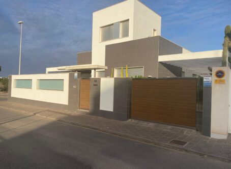 Stunning Modern Home in Mil Palmeras Nestled in the desirable area of Mil Palmeras, this exceptional modern home offers the perfect blend of luxury, style, and comfort. With a spacious layout and breathtaking outdoor spaces, this property promises an unparalleled living experience. The expansive back garden is a true oasis. A sparkling pool takes center stage, complemented by sunbeds where you can unwind and soak in the sun. A small, grass-covered meeting area provides a peaceful retreat for gatherings or quiet moments of relaxation. Additionally, the garden includes a cleverly designed, closed-off bathroom with a shower for added convenience and privacy. For those with vehicles, the property features a two-car garage with a roof, offering both shelter and security for your vehicles. Inside, the home showcases a modern design with stunning wooden floors throughout. The open-plan living and dining area is both spacious and inviting, perfect for family gatherings or entertaining friends. The living room boasts a comfortable sofa and TV, creating a cozy atmosphere for relaxation. The dining area is generously sized, offering ample space for meals and celebrations. On the ground floor, the master bedroom is a true retreat, featuring a large bed, a spacious wardrobe, and its own luxurious ensuite bathroom. A second bedroom, located across from the master, offers a peaceful space for guests or family members. There is also an additional bathroom conveniently located near the living area. Upstairs, you’ll find a delightful children’s room complete with its own private bathroom and shower. Two entrances to the balcony allow the room to be bathed in natural light and offer lovely views of the surrounding area. This home is designed with family comfort in mind, offering both modern elegance and practicality. Located in the beautiful Mil Palmeras, it’s the perfect place to call home. Contact us today to arrange a viewing and discover everything this spectacular property has to offer!