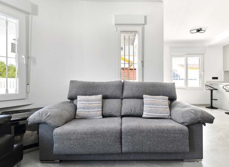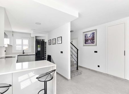 Fully refurbished and immaculately presented 3 bedroom, 2 bathroom detached villa with private swimming pool, located within walking distance of all amenities, including two supermarkets, in the highly sought-after village of Pinar de Campoverde. Set on a quiet street surrounded by greenery, this stunning home is just 10km from the blue-flag beaches of Torre de la Horadada and Mil Palmeras. Upon entering the plot, you are welcomed by a beautifully re-tiled, low-maintenance garden featuring a private swimming pool and ample space for sunbathing and dining. A few steps lead up to a raised terrace with a sun awning and the main entrance to the property. The front door opens into a bright and spacious open-plan living and dining room with air conditioning and a stylish feature wall. The modern, well-designed kitchen sits to the rear of the dining area and is separated by a breakfast bar. It offers generous storage and high-quality finishes throughout. A hallway from the living area leads to two double ground-floor bedrooms, both good-sized rooms with built-in wardrobes and newly installed hot/cold air conditioning units. At the end of the hallway is a beautifully modernised family bathroom with a spacious walk-in shower. Internal stairs lead from the living area to the first floor. At the top of the stairs you will find a large, custom-designed walk-in wardrobe and dressing room created by the current owners. Adjacent is the second family bathroom, also featuring a large walk-in shower. Completing this level is the master bedroom, which benefits from hot/cold air conditioning and patio doors opening onto a private roof terrace with lovely views over the surrounding countryside. Outside, the plot offers everything needed for enjoying the Mediterranean lifestyle: a private swimming pool, off-street parking via an electric gate, a solar shower, and a fantastic fully equipped outdoor kitchen and bar - perfect for entertaining family and friends. The outdoor kitchen has been thoughtfully designed with ample storage, sink, hob, and closing panels to secure it when not in use. The property also boasts 13 recently installed solar panels, significantly reducing running costs. This exceptional villa has been completely refurbished from top to bottom, including new electrics, new internal and external flooring, new bathrooms, modern kitchen, UPVC windows, lighting, air conditioning, entrance gates, internal doors, and front door. The entire property has been freshly painted inside and out. All renovation work has been undertaken to a very high standard using top-quality materials throughout. This is a truly key-ready home with outstanding features and an unbeatable location. Don’t miss out - contact us today to arrange your viewing.