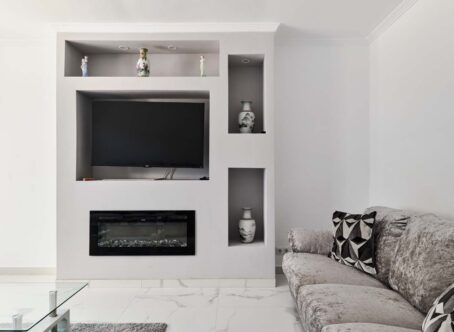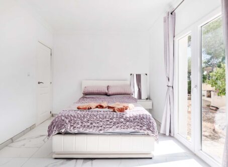 Detached three-bedroom, three-bathroom villa with private pool and garage, located within walking distance of amenities in Pinar de Campoverde. The property sits on a 1,100 m² flat plot close to the Rio Seco Natural Park and approximately 10 km from the beaches of Torre de la Horadada and Mil Palmeras. Access to the plot is via a sliding gate leading to a long driveway bordered by mature planting. To the left is the private pool with ample surrounding space. The villa is entered from a half-covered front terrace overlooking the pool and garden. The front door opens into an open-plan kitchen and dining area. The kitchen has generous storage and has been recently updated. An archway leads to the living room with large windows and a media feature wall. A hallway from the kitchen connects to a guest bedroom with en suite and the main bedroom with air conditioning, garden access, and a large en suite with bath and walk-in shower. A glass door from the dining area leads to stairs up to the third bedroom, which has patio doors to a small terrace and its own en suite bathroom. The exterior is mostly paved for low maintenance, with established plants throughout. At the rear is a storage room with WC and plumbing for a washing machine. The garage is positioned on the right side of the villa and offers storage or potential conversion. Additional features include a roof solarium, a private and well-screened plot, and a quiet setting within easy reach of local services.